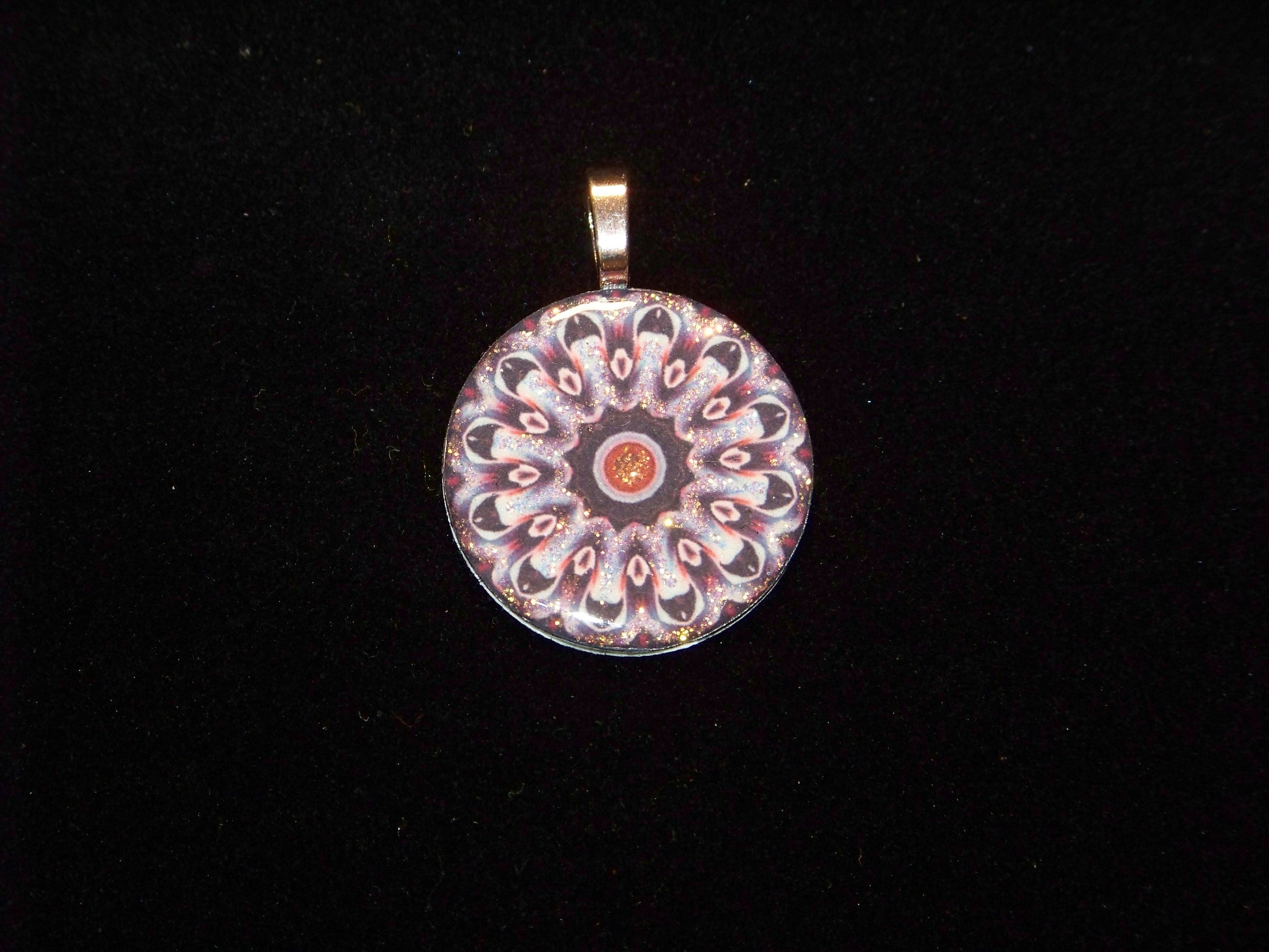 1.25-inch pendant with sterling silver bezel. Comes with your choice of colors for the included 17-inch ribbon cord necklace. 20-inch round cord necklace will have a $1.00 added charge. Both have a 2-inch extension chain and lobster clasp.