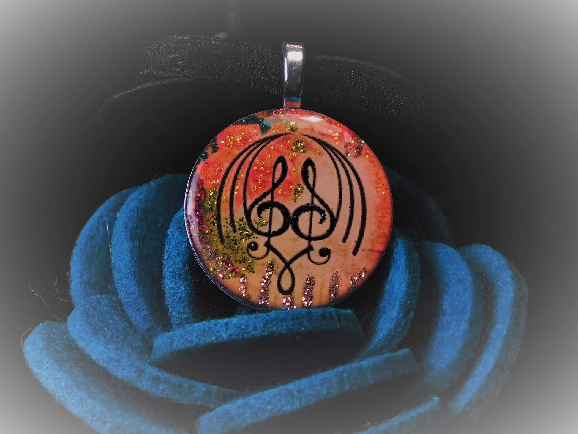 1.25-inch pendant with sterling silver bezel. Comes with your choice of colors for the included 17-inch ribbon cord necklace. 20-inch round cord necklace will have a $1.00 added charge. Both have a 2-inch extension chain and lobster clasp.