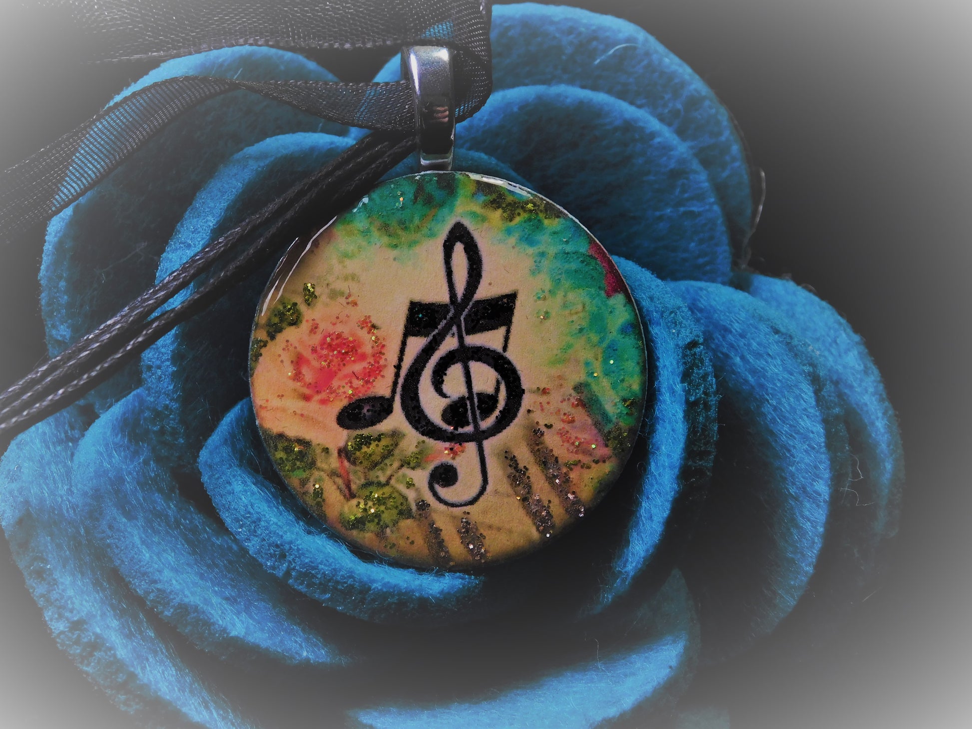1.25-inch pendant with sterling silver bezel. Comes with your choice of colors for the included 17-inch ribbon cord necklace. 20-inch round cord necklace will have a $1.00 added charge. Both have a 2-inch extension chain and lobster clasp.